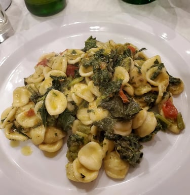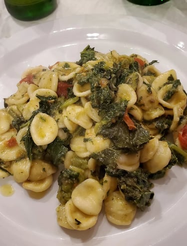 Orecchiette mit Stielmus haben mittelalterliche Ursprünge und sind typisch für Apulien. Diese handgemachte Pasta, geformt wie ein kleines Ohr, wurde traditionell getrocknet, um lange Reisen zu überstehen.