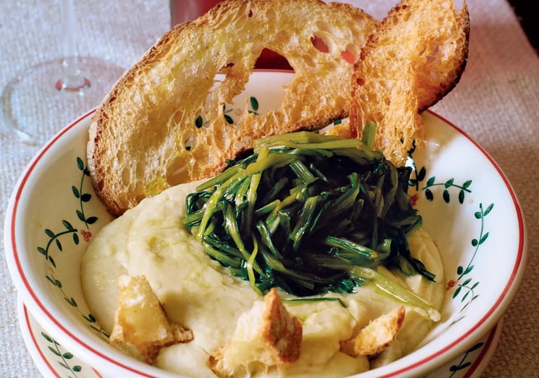 Das Gericht „Fave e Cicorie“ entstand als einfaches Bauernessen, das auf den apulischen Feldern beliebt war. Das traditionelle Rezept sieht getrocknete Ackerbohnen vor, die lange gekocht werden und zusammen mit bitterer Zichorie ein ausgewogenes Geschmackserlebnis bieten. Es gibt auch Verbindungen zur alten griechischen Küche, wo ähnliche Gerichte geschätzt wurden.